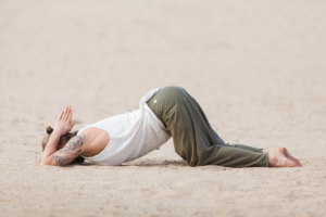 Liggende Twist, variatie (Jathara Parivartanasana)