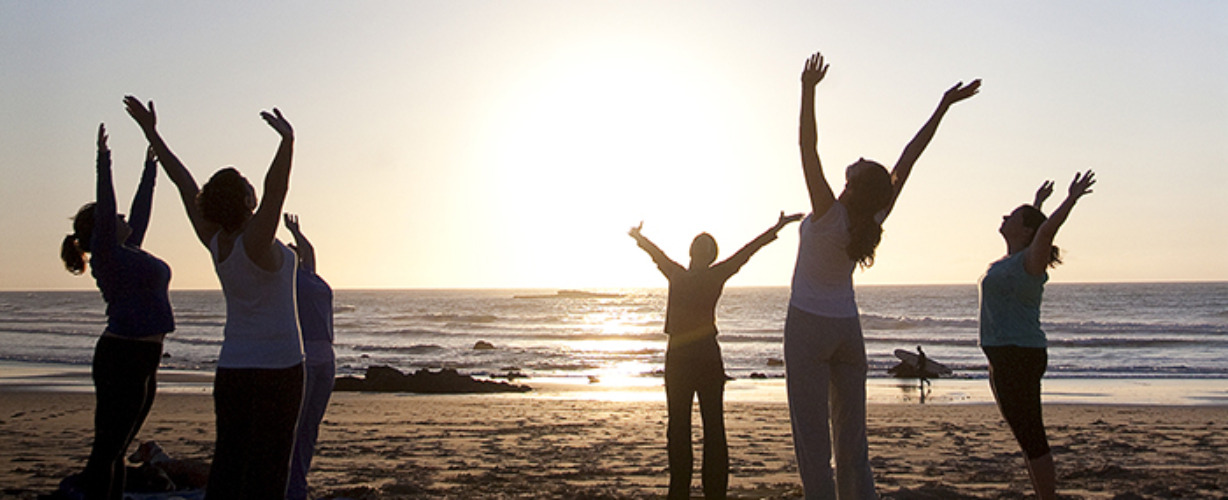Het heerlijkst zijn de yogasessies bij zonsondergang op Amado Beach, een van de mooiste stranden van Portugal. In het gouden schijnsel van de ondergaande zon buig ik voorover. Als ik tussen mijn benen door naar de mysterieuze mist kijk die wordt veroorzaakt door miljarden druppeltjes zeewater tussen de rotsen, schiet er een geluksgevoel door me heen. Ik voel me licht, zonder honger te hebben, ik adem de oceaanlucht diep in en besef: op zo’n plek en op deze manier aan je gezondheid werken, dat geeft inderdaad nieuwe levensenergie.’