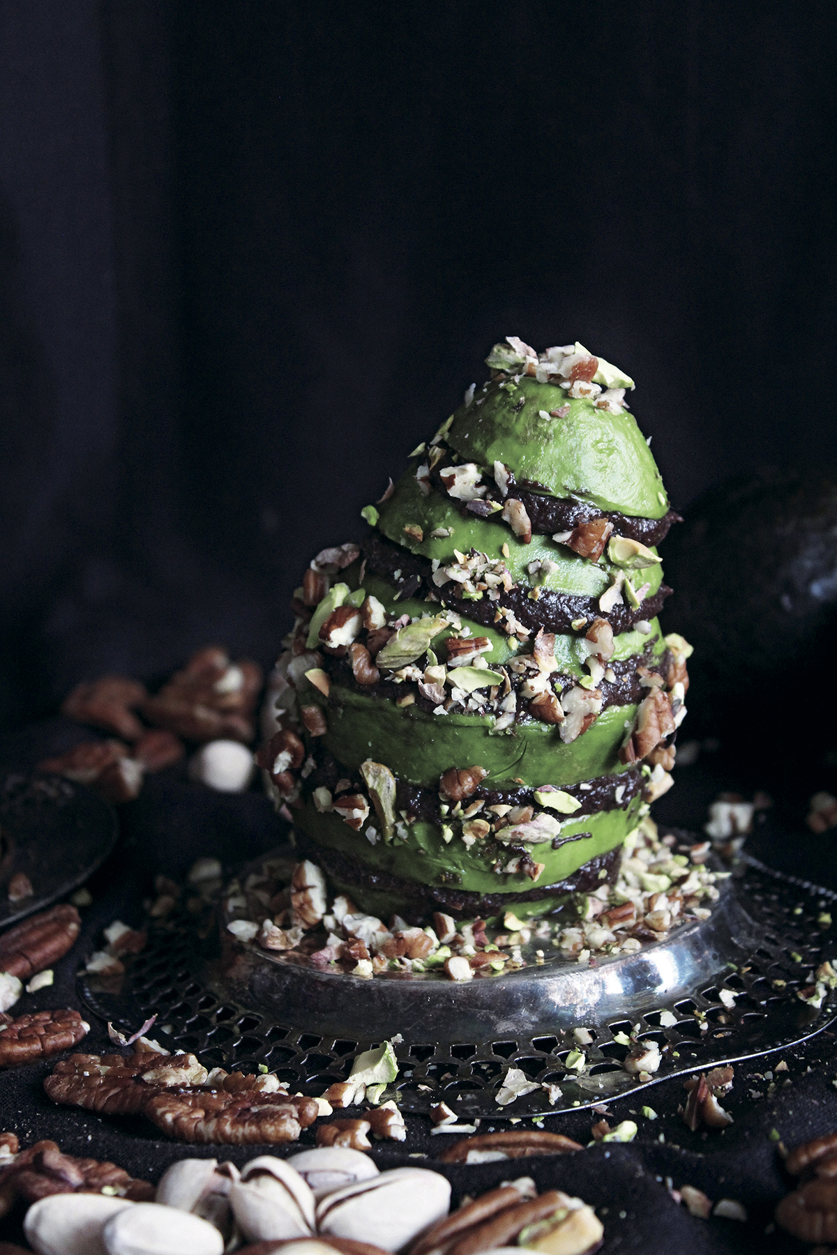 Avocado Towers met Dark Chocolate Mousse & Cinnamon Pistachios