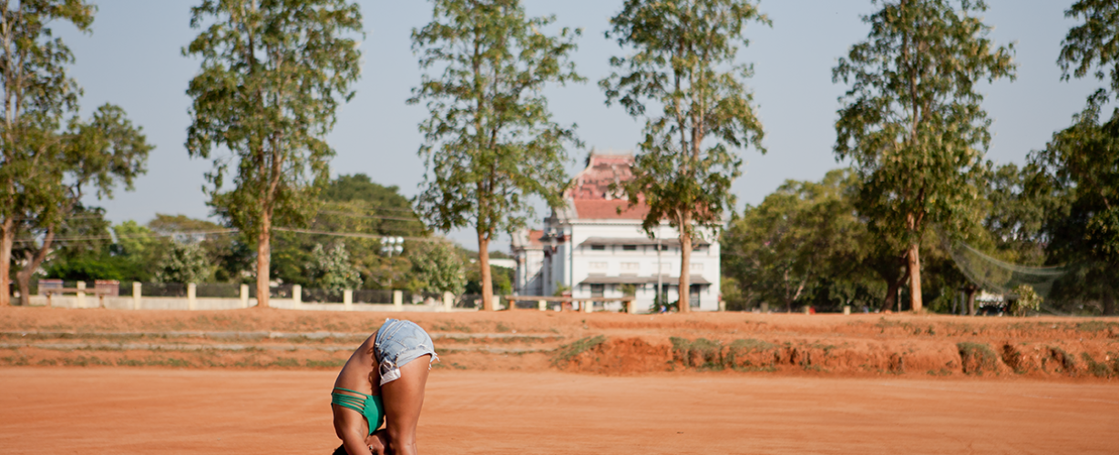 Op de foto: Nicole Ellis uit Texas: ‘Ik heb hier in het Indiase Mysore de hele Ashtanga-serie geleerd, bij Sharath Jois. Ik had vooraf geen idee, dus het was best pittig! Uttanasana doe ik dagelijks, het helpt bij het herstel van de peesontsteking in mijn voet.’