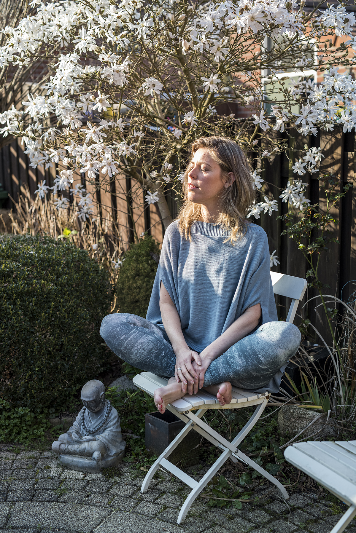 ‘Ik heb me zo in de steek gelaten gevoeld. Na verloop van tijd kon ik hem weer als mens zien, iemand voor wie ik compassie kon voelen. Dat was enorm bevrijdend.’ Haar ex-man woont inmiddels in Israël, het contact tussen hen is genormaliseerd. Yoga is niet meer weg te denken uit haar leven.