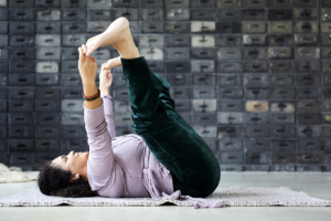 Neus-naar-Kniehouding (Pavanamuktasana)