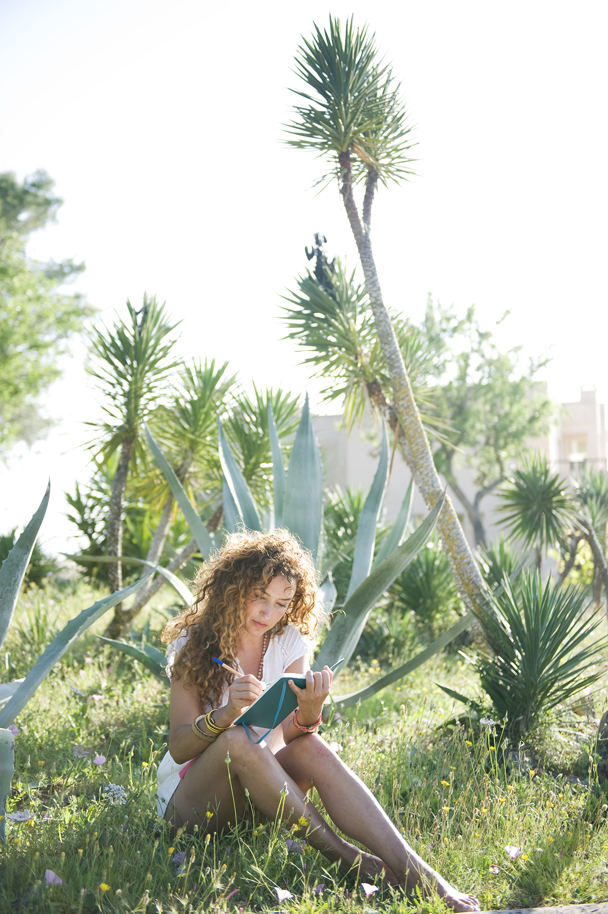 een Chileense medicijnvrouw. En van voetreflexologie tot sound healing. Ik merk dat ik vrolijk word van het feit dat sommige deelnemers tussen de yogalessen door lekker zonnen aan het zwembad, anderen een boekje lezen in de schaduw of een hippiemarktje bezoeken, weer anderen er even tussenuit sneaken voor een sangriaatje op het strand, terwijl tegelijkertijd iemand haar aura laat lezen of zich overgeeft aan de klanken van de prachtige schalen, snaren en drums van Deva, de geliefde van Lena.