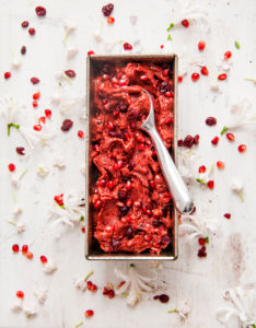 Serveer het ijs direct en bestrooi met wat extra cranberry’s en granaatappelpitjes. Mocht het ijs te zacht zijn, zet het dan eerst nog een kwartier in de vriezer.