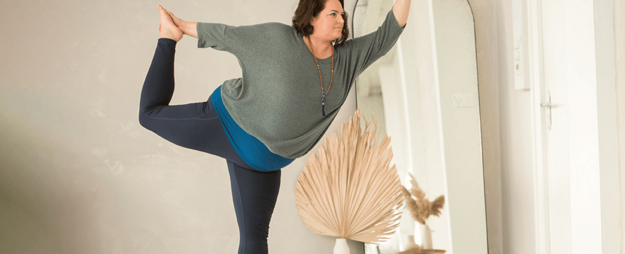 ‘De Boom helpt mij naar binnen te keren, weg van alle prikkels, om zo de balans in mezelf te vinden. Mijn voet komt op mijn onderbeen. Meer ruimte heb ik niet – en daar heb ik vrede mee. Het gaat er niet om hoe mijn Boom eruitziet, maar om het gevoel dat deze houding mij geeft.’
