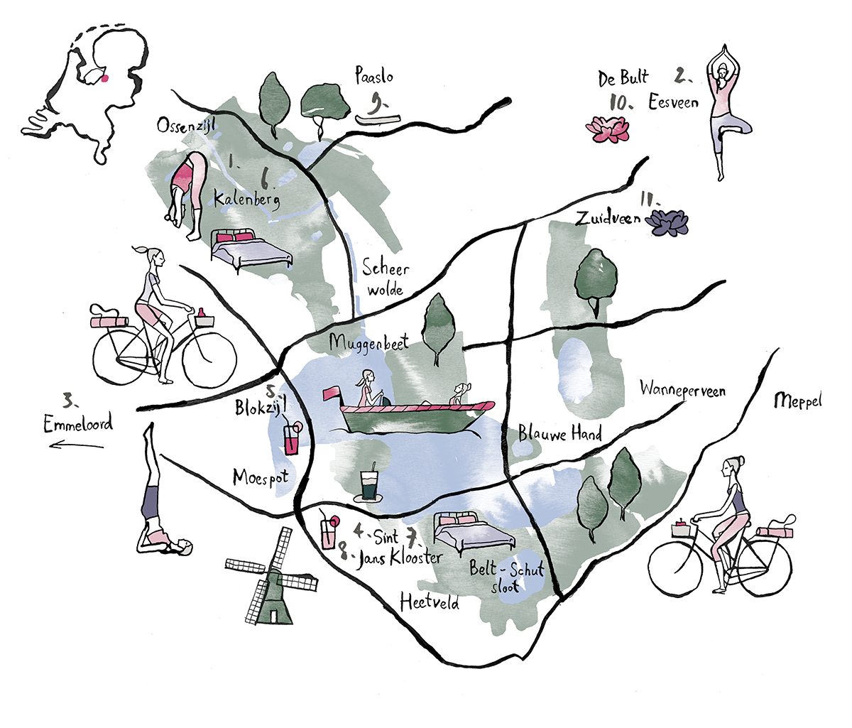 Yoga tussen de wilde bloemen? In het Nationaal Park Weerribben-Wieden (in de gemeente Overijssel) kan het. Stap op je fiets, mat achterop en schakel terug bij het gefluit van weidevogels.