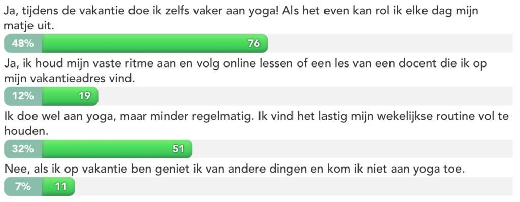 De zomer is begonnen! Wat betekent dat voor jouw yoga practice? Rol je vaker je matje uit of geniet je juist van andere dingen. De poll is inmiddels gesloten! Dit was de uitslag:
