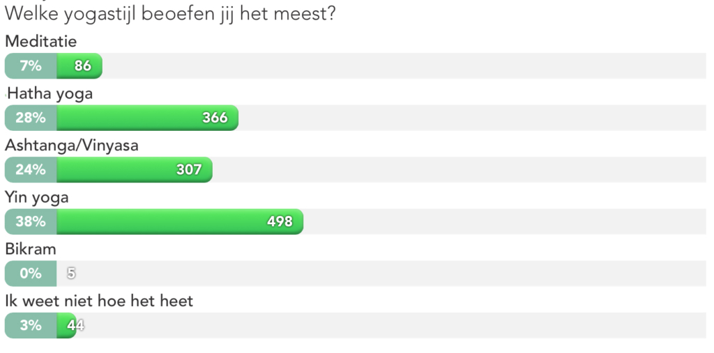 Deze poll is afgelopen. Hieronder vind je uitslag en in de comments vind je welke yogastijlen er nog meer beoefend worden door jullie.