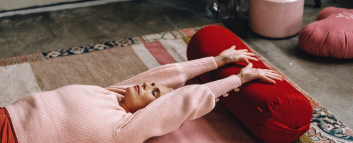 Liggende Vlinder (Supta Baddha Konasana) met bolster