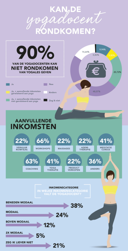 Leven van de lucht, het klinkt zo vrij en grenzeloos. Maar met prana alleen betaal je niet de boodschappen, hypotheek en energierekening. Wat blijkt: vorig jaar verdiende ruim 50 procent van de yogadocenten minder dan modaal, terwijl 21 procent zelfs onder de 5.000 euro bleef steken. Slechts een handjevol (10 procent) lest een volwaardig inkomen bij elkaar.