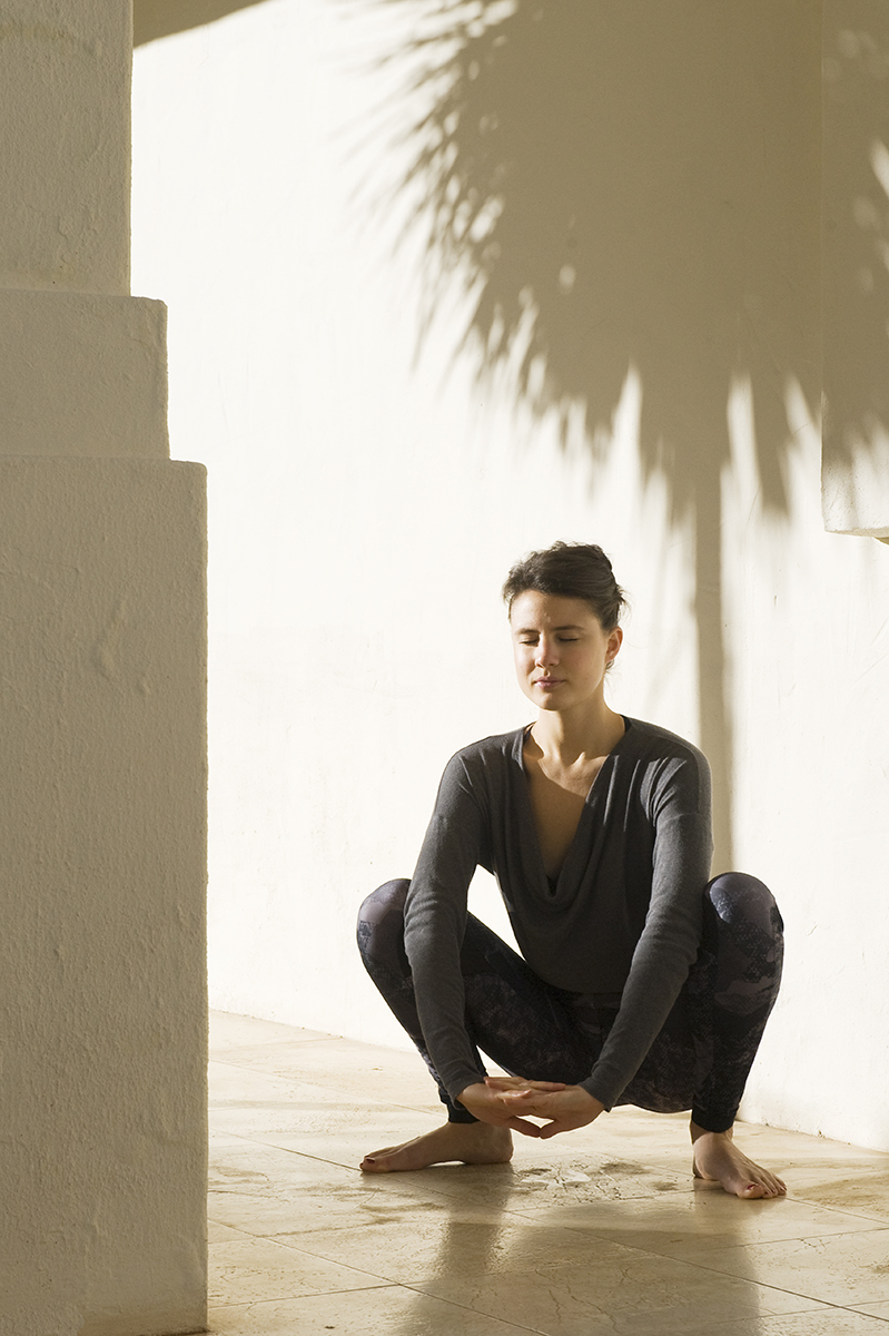 Beeld: Bonnita Postma, model: Rosalie Briant, serie: Dru Yoga – stilte in beweging, Chris Barrington, Amit Goswami en Annie Jones, Dru Yoga Foundation
