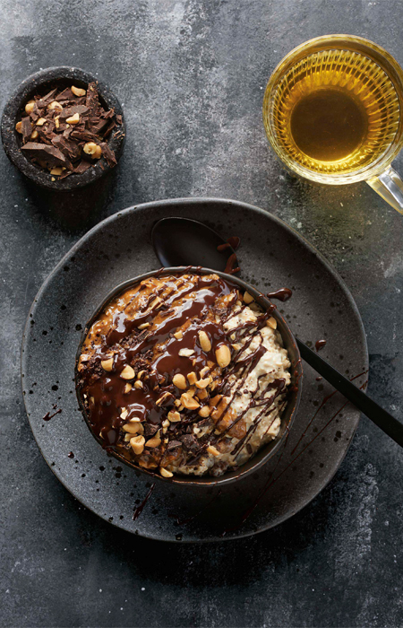 ‘Als je geregeld (twee dagen per week) gematigd of helemaal niet eet, kun je best af en toe genieten van maaltijden die wat overdadiger zijn. Zoals de Snicker Oats en de donuts hiernaast. De parelcouscous daarentegen is juist gematigd en rijk aan voedingsstoffen. Zolang er maar evenwicht is tussen gematigd/onthouding/gezond en weldaad/overvloed. Uiteindelijk gaat het om balans creëren tussen die twee, net zoals yin en yang bij elkaar horen.’
