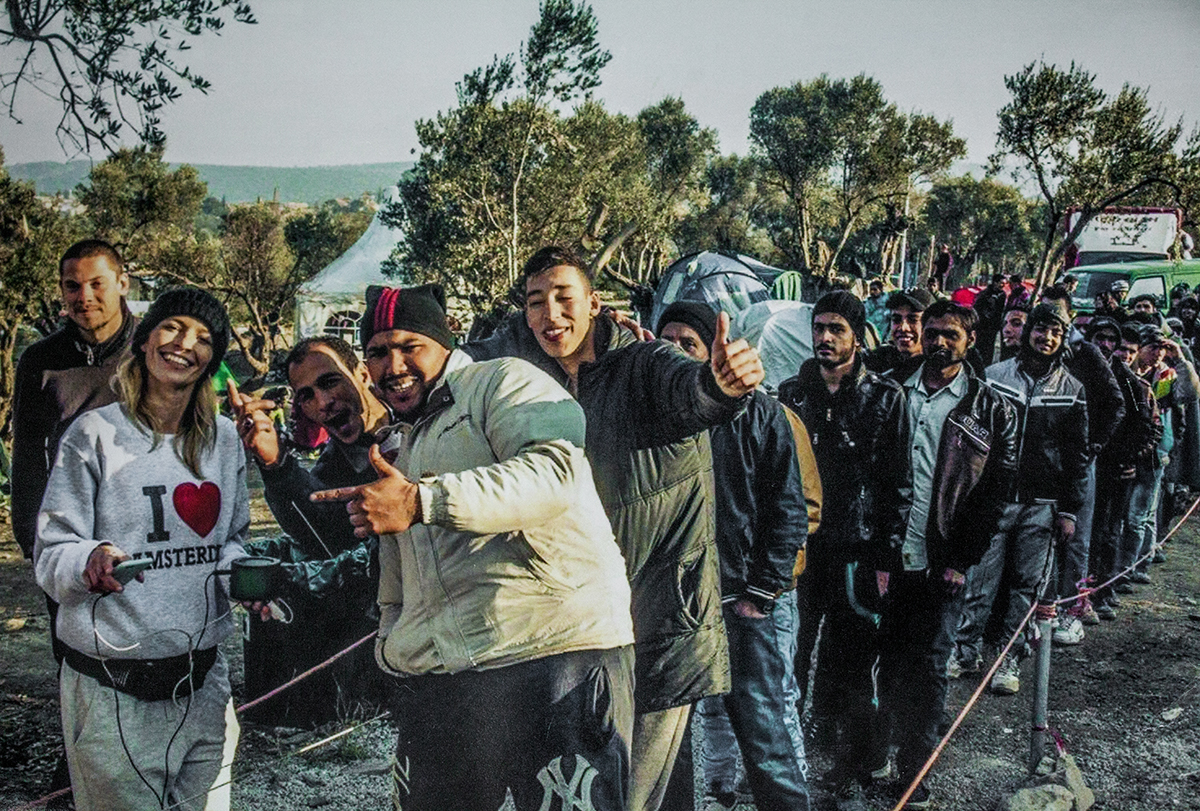 En zo gebeurde het dat ze haar leven in Amsterdam, waar ze werkte als yogadocent bij Sukha Yoga, achter zich liet en naar Lesbos vertrok. ‘Ik handelde vanuit naïviteit en kreeg daarmee veel voor elkaar. Elke dag deelden we voedsel uit vanuit een busje. Maar hoe krijg je drieduizend mensen in een rij? Door muziek. Ik danste op het dak van het busje en kreeg zo oogcontact met mensen die me konden helpen om een goede rij te vormen. De ouwe rotten in het humanitaire veld keken toe en dachten: Die chick is gek.’
