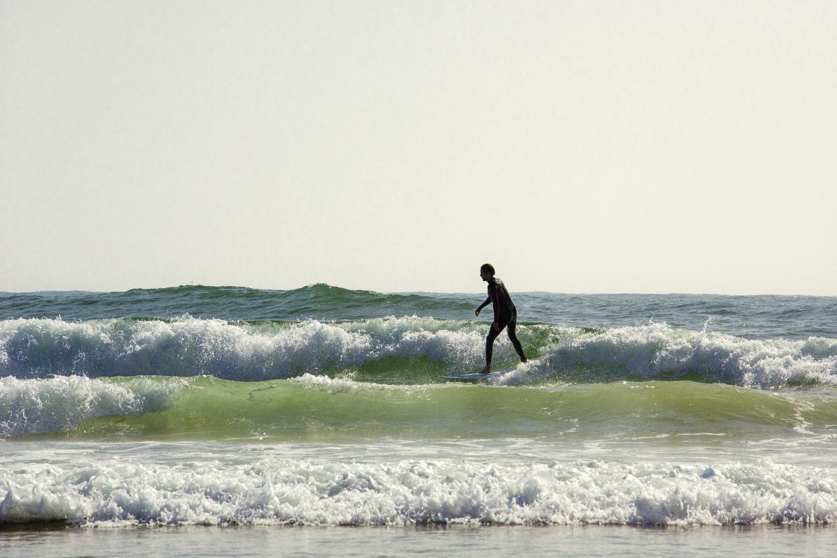 Bij de surfschool geeft uitbater Tarik Wahbi (43) me een hug. ‘Hoe vaak ik dát al niet gehoord heb!’ lacht de Marokkaanse surfveteraan als ik opmerk hoezeer hij lijkt op de Amerikaanse rapper Snoop Dogg. Ons doel vandaag: Imsouane, een woestijndorp op een schiereiland waar bijna altijd een surfbare golf te vinden is. Energiek binden we de boards op Tarik’s terreinwagen. We passeren de bekende surfspot Boilers, genoemd naar de scheepsketel die in zee achterbleef nadat er een schip verging. We draaien het binnenland in en zoeven langs bananenplantages, olijfboomgaarden en een slaperig dorp waar we fruit inslaan. Als de weg gaat klimmen ontvouwen zich schitterende vergezichten over de vlaktes en de zee beneden ons. De bergen zijn opvallend groen: veelkleurig bloeiende bloemen en olijfbomen vol knalgroene olijven. Aan het strand in Imsouane spelen muzikanten hypnotiserende gnawa, oeroude spirituele muziek die trance oproept. Heupwiegend hijsen we ons in onze wetsuits: de golven zien er goed uit! ‘Deze spot heet Cathedral,’ zegt Tarik nadat we de zee in zijn gepeddeld. ‘Op die klif daar stond een Spaanse kolonistenkerk. De golven hebben hem door de eeuwen heen weggespoeld.’ Om beurten surfen we lange ritten helemaal naar het strand. Woeha! Niets zo lekker als surfen. Ik versmelt met mijn omgeving: het frisse water dat altijd in beweging is, de zeemeeuwen die gewichtloos boven ons zweven, het heldere licht dat door de diepblauwe golven fonkelt. Eenzaamheid en zorgen transformeren in een alles-is-één-gevoel. De zee zorgt voor me. Net als yoga haalt surfen me weg uit mijn hoofd en naar mijn lijf en mijn emoties. Ik lééf! Gelukzalig dobber ik nog even rond in de branding. Lunchtijd.