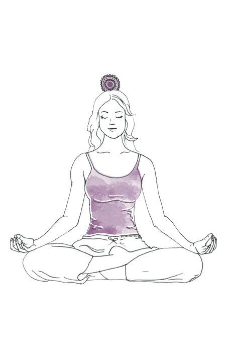 Het kruinchakra bevindt zich bovenop je hoofd. Als het geopend is, voel je je verbonden met een diepe wijsheid. Je voelt je één met de wereld. Yoga-oefeningen vormen daarvoor een belangrijke basis.