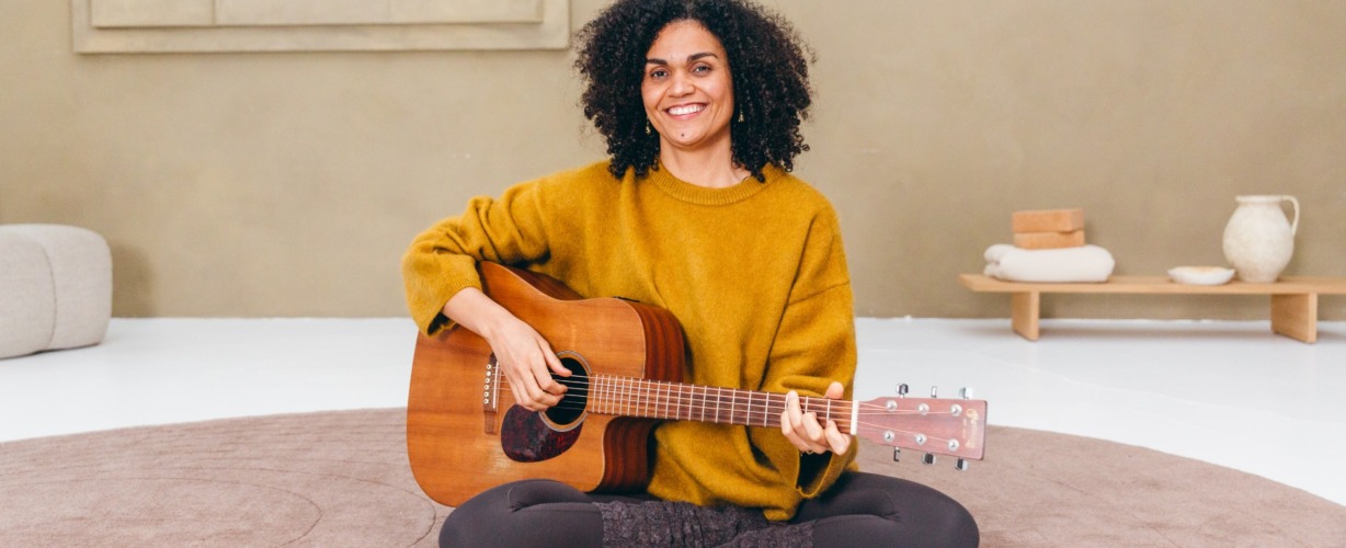Naast haar liefde voor yoga heeft Lovely nog een andere liefde: muziek. Jarenlang is zij gitaardocent geweest. Als singer songwriter neemt ze altijd graag haar gitaar mee naar de les en speelt ze yoga mantra’s en eigen liedjes om jou te ondersteunen in jouw proces van naar binnen keren.