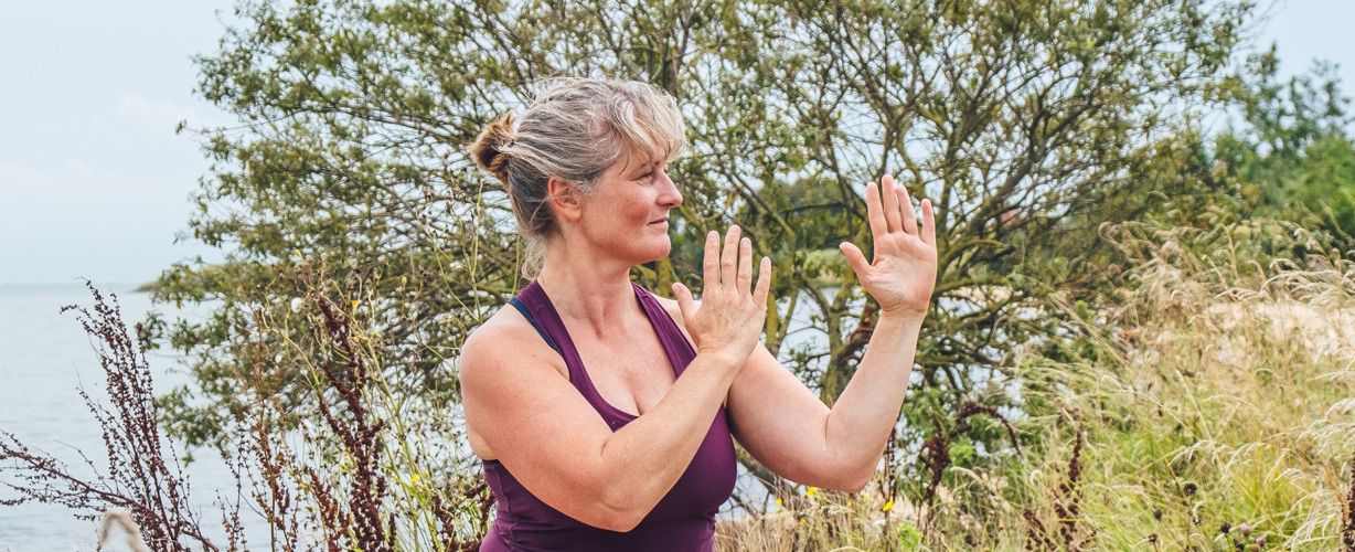 Toen Petra negentien was kwam ze voor het eerst in aanraking met yoga. Ze studeerde klassiek ballet en werd door een vriendin meegenomen naar een yogacursus. Petra: ‘Die eerste keer zal ik nooit vergeten. Ik zie mezelf nog liggen op mijn rug met mijn handen op mijn buik. Ik mocht ademen en kwam in contact met mijn lichaam. Ik was verbaasd: mijn lichaam leeft.’