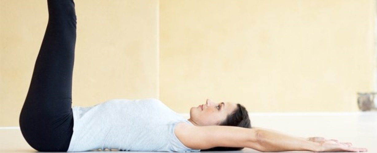 Houd in deze houding de rug lang, de onderrug goed in de mat gedrukt en de buikspieren aangespannen. Voor sommige yogi’s betekent dit dat de voeten niet helemaal richting de grond komen. Je kunt een muur gebruiken om te voorkomen dat de benen zo ver naar beneden komen dat de onderrug hol trekt.