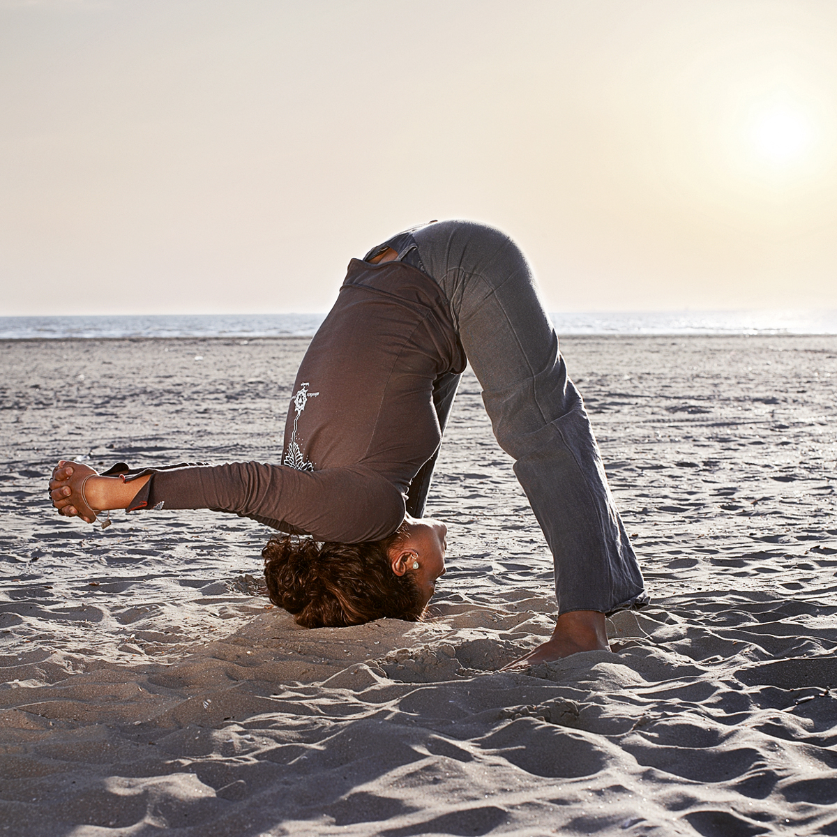 Deze houding traint de binnen- en achterkant van de benen en verlengt de wervelkolom. De Staande Hoek kan milde rugpijn verlichten en brengt rust in je hoofd. Door de vingers achter de rug te verstrengelen, mobiliseert de houding de schoudergewrichten. Zuurstofrijk bloed stroomt in deze houding naar de hersenen, waardoor vermoeidheidsklachten afnemen.