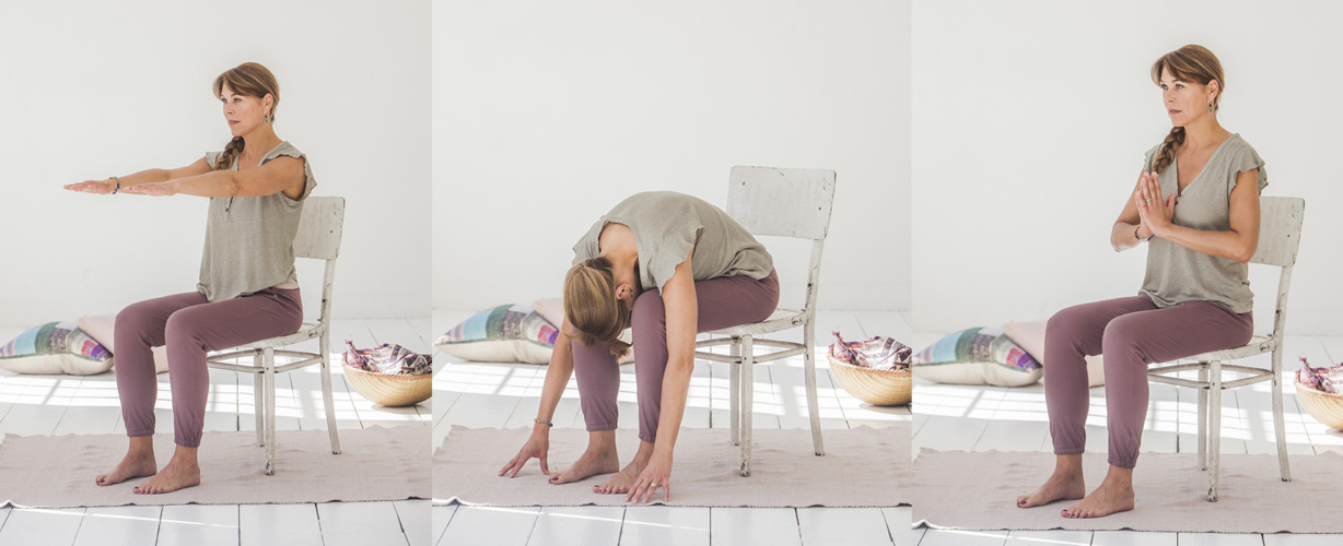 Om yoga te doen hoef je niet per se je matje uit te rollen. Je hoeft je er zelfs niet voor om te kleden. Bij Stoelyoga is je stoel je mat.