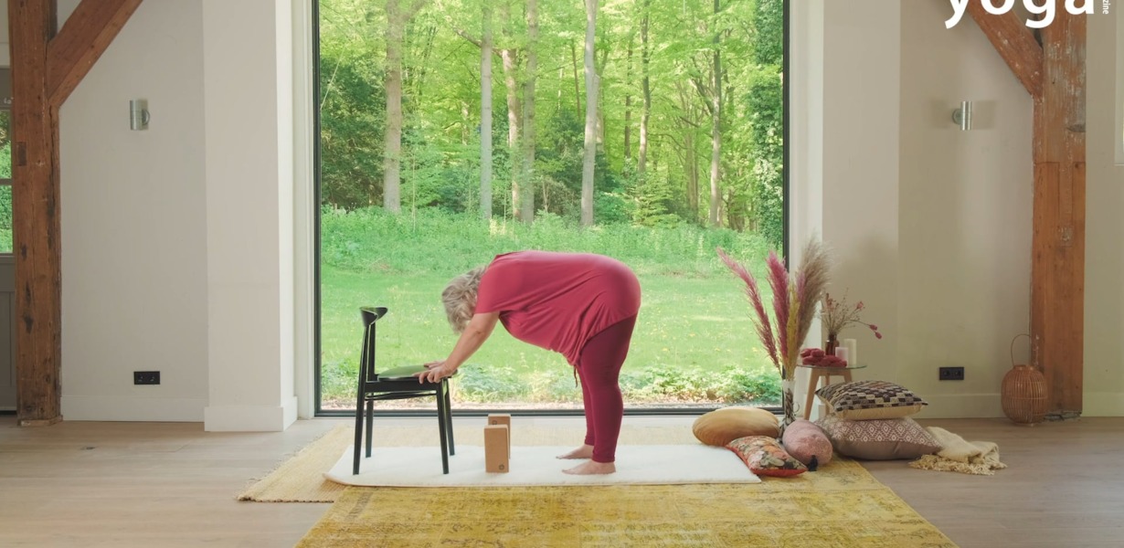 Voor deze les is het handig om een stoel en yogablokken klaar te zetten.