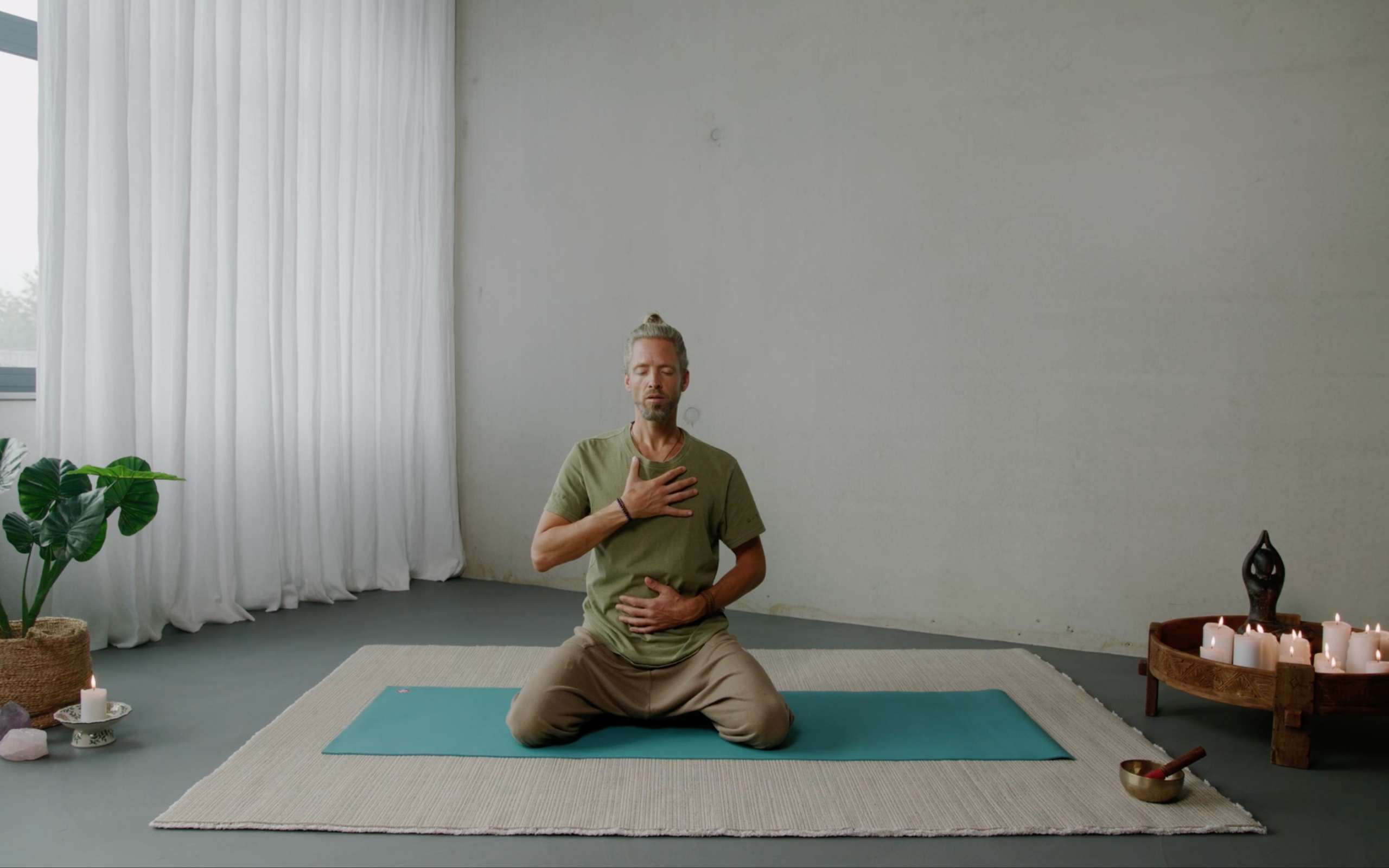 In deze les ga je samen met Rolandjan drie rondes verbonden ademen (breathwork) voor meer stilte in je hoofd. Je ademt diep in richting de buik. Bij elke inademing zeg je āJAā tegen het leven. Wat vast komt te zitten zet je weer in gang en komt meer in flow, waardoor je meer rust in je hoofd ervaart.
