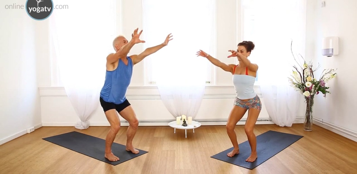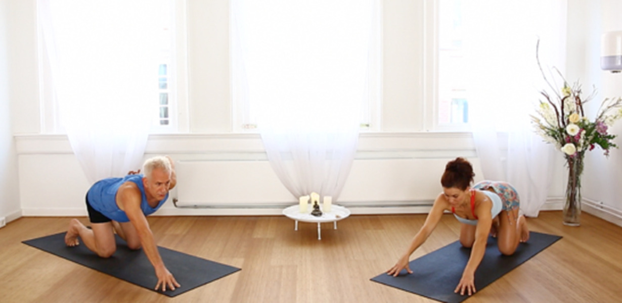 John Friend legt de basis uit van zijn stroming Sridaiva yoga. John en Desi laten variaties op de houdingen zien, die komen uit de Bowspring yoga, zodat iedereen mee kan doen – ongeacht niveau. Onthoud dat je bewustzijn in de houdingen belangrijker is dan hoe soepel je bent: bewaak je eigen grenzen.